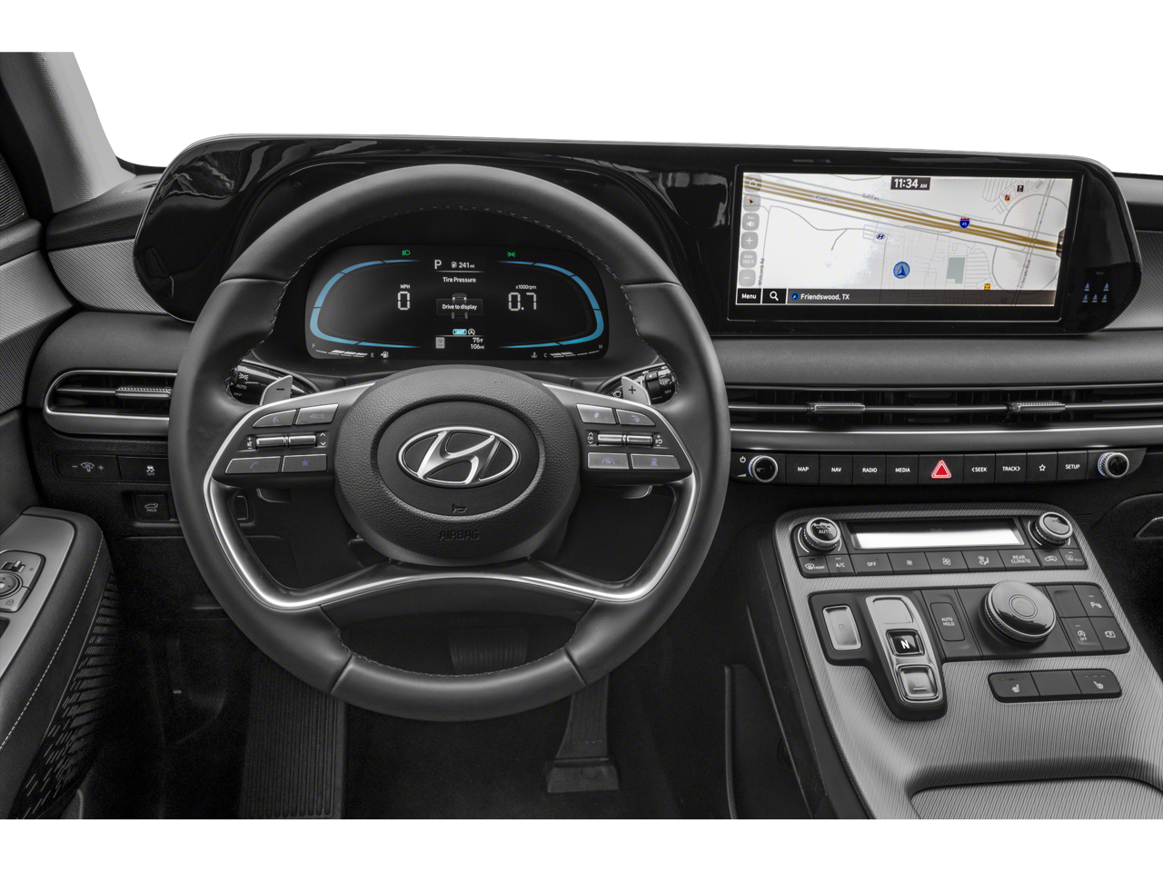 - Radio: AM/FM/MP3 Audio System -inc: 12.3" color touchscreen display, onboard navigation w/traffic flow including incident data via HD Radio (HERE), Over-the-Air (OTA) map updates, SiriusXM, USB, Android Auto and Apple CarPlay, dynamic voice recognition, rear seat quiet mode, Bluetooth® hands-free connectivity w/multiple device connection and Bluelink Connected Car System